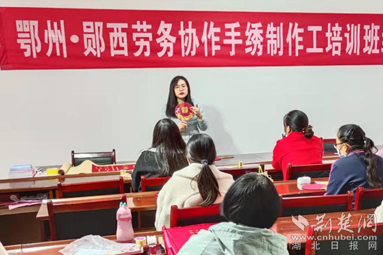 鄖西縣隸屬湖北省十堰市,是牛郎織女傳說(shuō)的起源地,有著“天上七夕,人間鄖西”的美譽(yù),旅游資源豐富。此次勞務(wù)協(xié)作培訓(xùn)班便是依托了當(dāng)?shù)厣裨拏髡f(shuō)資源,結(jié)合當(dāng)?shù)匕徇w安置區(qū)留守婦女較多的現(xiàn)狀,開(kāi)展手繡制作工培訓(xùn),由鄂州市就業(yè)勞動(dòng)中心特聘武漢市劉小紅刺繡藝術(shù)文化有限公司教師全程授課。