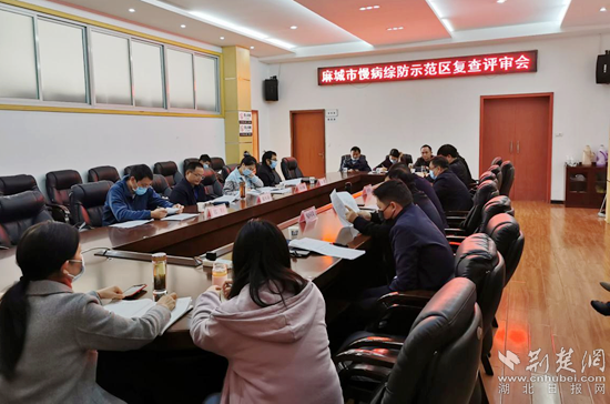 考評(píng)組聽(tīng)取麻城慢性病綜合防控示范區(qū)建設(shè)情況匯報(bào)。通訊員 供圖