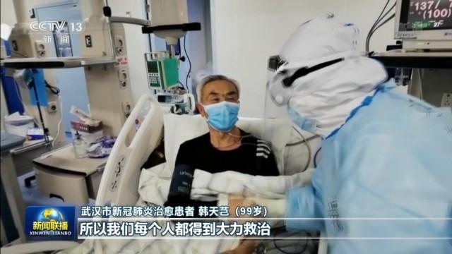 武漢市新冠肺炎治愈患者 韓天芑(99歲):上至百歲老人,下至初生的嬰兒,每個生命都是重要的,所以我們每一個人都得到大力救治,這是我們中國人的驕傲。
