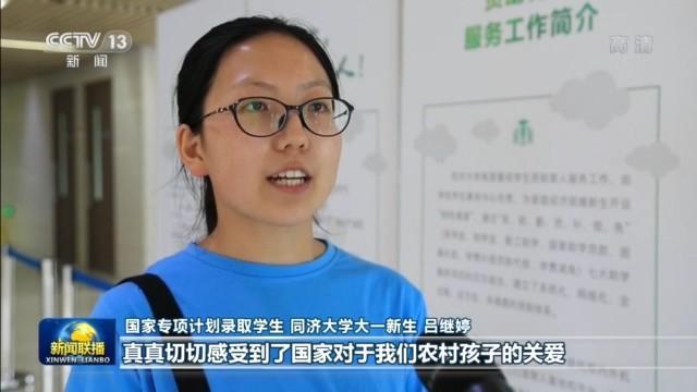 國家專項計劃錄取學生 同濟大學大一新生 呂繼婷:真真切切感受到了國家對我們農村孩子的關愛,之前申請了國家助學貸款,現(xiàn)在還可以申請學校的助學金和困難補助,也沒有了后顧之憂。我一定好好學習回報國家的培養(yǎng)。