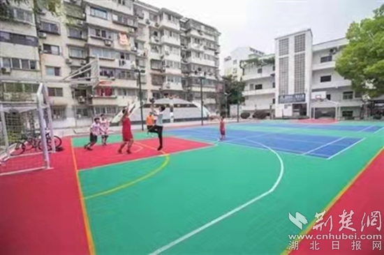 幾位居民在澄月全民健身文體廣場打籃球。通訊員 供圖