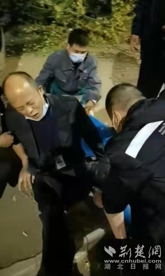 佘太平被民警抬上擔(dān)架。鄂州市公安局供圖