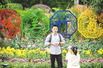 今年以來(lái),湖北經(jīng)濟(jì)復(fù)蘇勢(shì)頭良好。圖為10月31日,游客在武漢琴臺(tái)綠化廣場(chǎng)賞菊拍照。