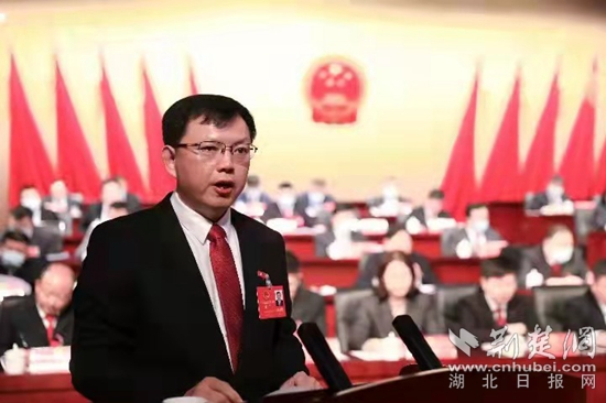 紅安縣委副書(shū)記、代理縣長(zhǎng)胡廣作《政府工作報(bào)告》。通訊員 供圖