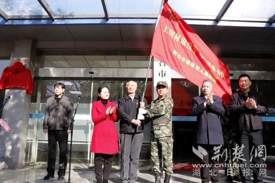 荊楚網(wǎng)(湖北日報網(wǎng))訊(通訊員 柯佳玲)10日,黃石市成立王明林退役軍人志愿服務(wù)隊。授旗儀式現(xiàn)場,首任隊長呂東和王明林一起接旗。