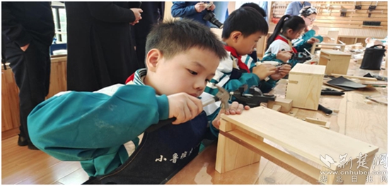 學(xué)生們在小魯班木工坊制作小凳子。 通訊員 供圖