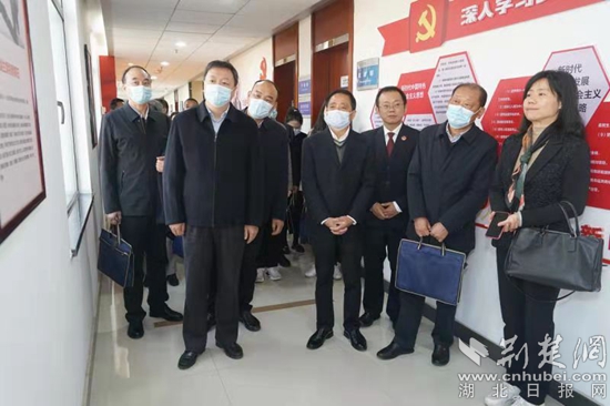 在黃石市檢察院,王永金主持召開座談會,介紹了代表基本情況和本次視察活動安排。會后,隨著講解員的引領(lǐng),代表們步入黃石市檢察院黨建園地和圖書館實地查看。從毛澤東同志兩次視察黃石到賀龍黃石整軍,沿著紅色文化廊道,代表們邊走邊看,一頁頁翻開黃石的紅色歷史。通過聲、光、電等載體,變紅色史料為直觀的學(xué)習(xí)載資源,吸引著代表們頻頻駐足觀看。