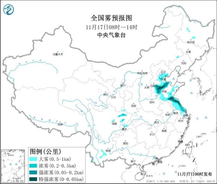 圖1 全國霧預報圖(11月17日08時-17日14時)