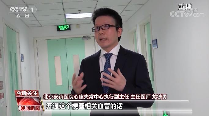 北京安貞醫(yī)院心律失常中心執(zhí)行副主任 主任醫(yī)師 龍德勇: 如果我們在一個小時之內(nèi)開通這個梗塞相關(guān)的血管的話,就會使患者大大獲益,尤其是對急性心梗后合并的這些心率失常是最根本的辦法。