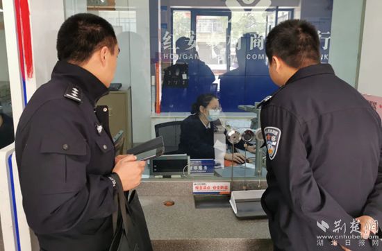 民警到轄區(qū)銀行展開調(diào)查。通訊員 供圖