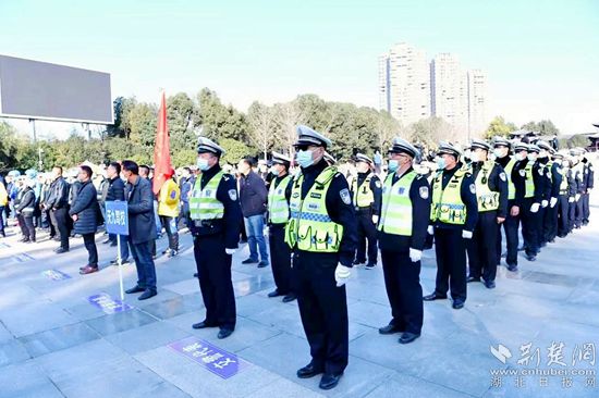 黃岡市公安局黨委委員、副局長曹幼松,黃岡市公安局交通警察支隊支隊長陳元凱,黃岡市公安局高警支隊支隊長李再柱,中國人民財產(chǎn)保險股份有限公司黃岡分公司總經(jīng)理蔣俊坡、副總經(jīng)理李志平,城市公交、出租車、代駕、快遞、外賣、貨運等企業(yè)駕駛員代表,以及市民代表等300余人參加了啟動儀式。