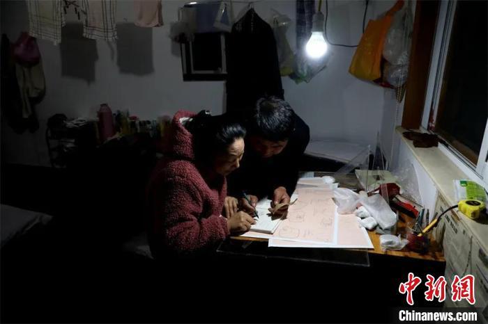 梅亞龍悉心輔導(dǎo)妻子易曉玲繪圖 吳建勛 攝