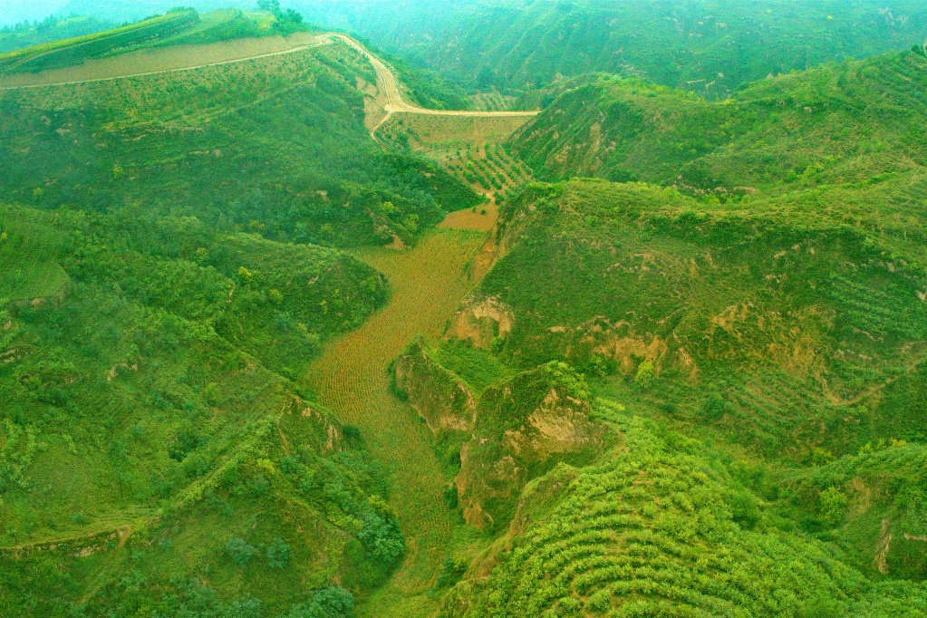 黃河流域綏德境內(nèi)的淤地壩。新華社記者 劉詩(shī)平攝