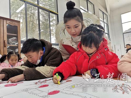 荊楚網(wǎng)(湖北日?qǐng)?bào)網(wǎng))訊(通訊員 胡劍芳 馮超 胡曉瑩)歲末隆冬,寒風(fēng)刺骨。12月26日,大幕鄉(xiāng)西山下村藝術(shù)寫生基地沸騰了。咸安區(qū)婦聯(lián)組織的“巾幗攜手童行,情暖櫻花之鄉(xiāng)”活動(dòng)熱鬧舉行,26名留守孩子與愛心媽媽聚集一堂,在名師指導(dǎo)下畫畫,練書法,包餃子,風(fēng)尚愛心團(tuán)隊(duì)幫留守女孩扎頭發(fā),愛心媽媽用手機(jī)幫留守孩子與在外打工的父母視頻……以別樣方式迎接新年到來(lái)。