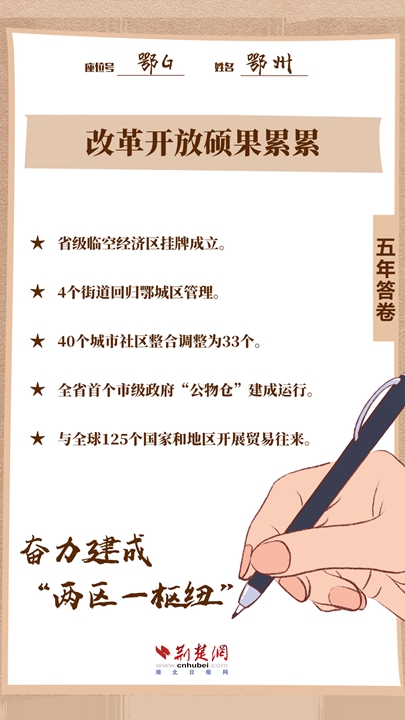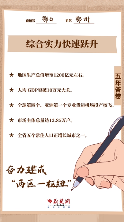 過去五年,鄂州全市上下勠力同心、接續(xù)奮斗、勇毅前行,準(zhǔn)確地把握新發(fā)展階段,全面貫徹新發(fā)展理念,加快融入新發(fā)展格局,為人民“趕考”,交出了一張高水平、超預(yù)期的精彩“答卷”。