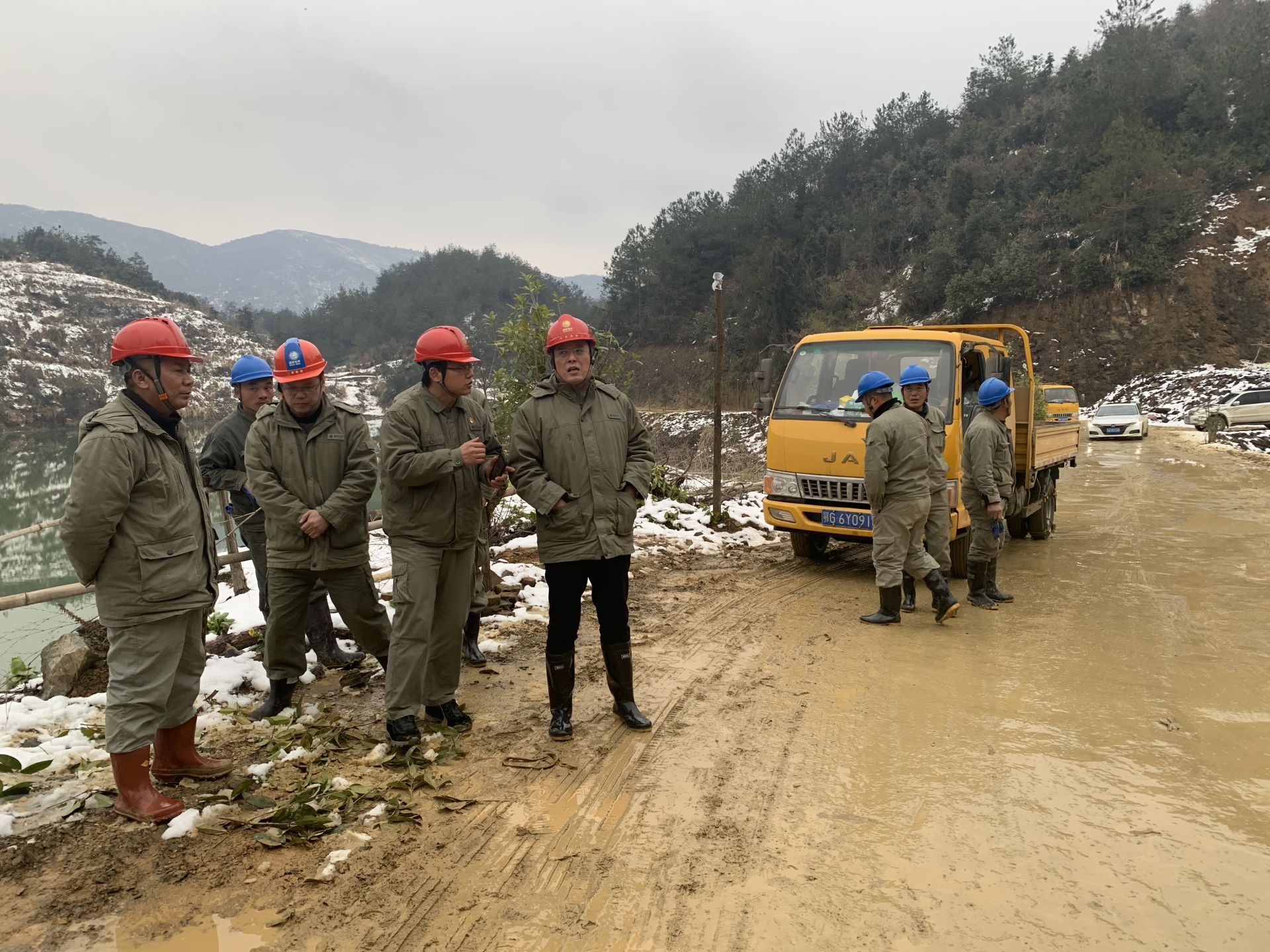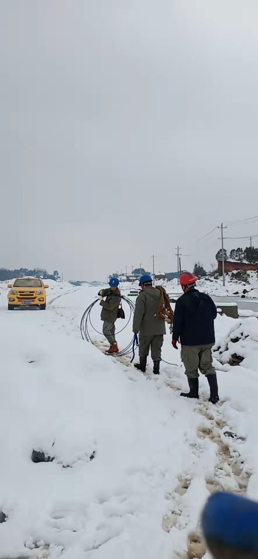 由于災(zāi)情嚴(yán)重,黃石市高新區(qū)配電工程公司、市區(qū)配電工程公司、輸電分公司等4個(gè)兄弟單位帶人力、物資馳援陽(yáng)新,公司員工自發(fā)組織10臺(tái)四驅(qū)車輛參與山區(qū)救援,累計(jì)200余名電力員工,60余臺(tái)車輛,在冰天雪地中與時(shí)間賽跑。