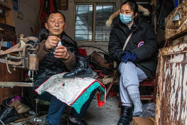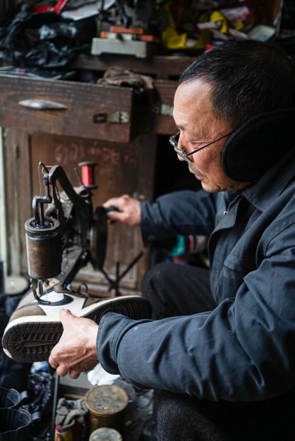知道這位年輕媽媽著急回去準(zhǔn)備晚飯,陳師傅忙放下手頭的活兒,迅速又麻利地修補(bǔ)好了她的鞋子。