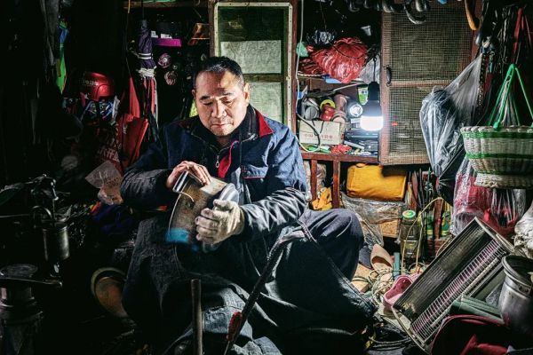 附近的老熟人們要是經(jīng)過鋪?zhàn)娱T口,都習(xí)慣性的進(jìn)來坐上一會(huì)兒。誰家的鍋底穿了,雨傘壞了,也會(huì)來這里找老師傅看看,總不會(huì)讓人走空的。