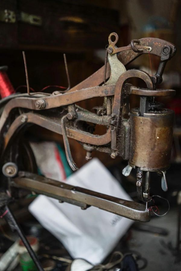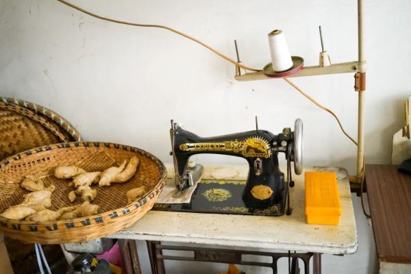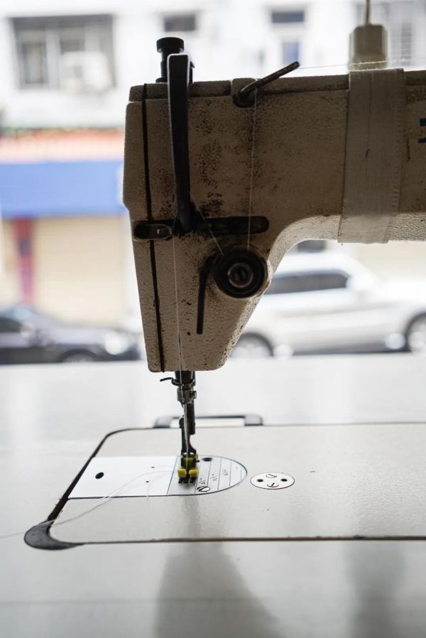 店主人是一對老夫婦,打理了近20年的制衣店,既是經(jīng)營場所,又是生活場所。用來縫制的工作臺(tái)和幾個(gè)頗有年頭的縫紉機(jī),踏踏實(shí)實(shí)的在客廳一角陪伴了老兩口幾十年。六幾年的踩腳式縫紉機(jī)被新款式機(jī)子取代,大卷的彩線逐漸落了灰,鋪面也從制衣店變成了裁縫店。