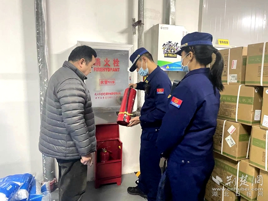 在鐵山木欄工業(yè)園,消防監(jiān)督檢查人員詢問了一復(fù)工企業(yè)負(fù)責(zé)人春節(jié)重點(diǎn)時段人員值班值守情況,結(jié)合企業(yè)復(fù)工提醒應(yīng)落實(shí)的消防安全工作。其間,檢查人員還隨機(jī)抽查了員工對火災(zāi)情況下人員疏散逃生、初期火災(zāi)撲救、滅火器使用等消防常識掌握情況,并現(xiàn)場對員工進(jìn)行宣傳教育培訓(xùn)。