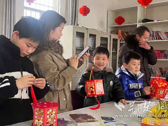該村農(nóng)家書屋管理員王桂花向大家介紹元宵節(jié)的來歷,村里早早備好了燈謎,內(nèi)容涵蓋詩詞歌賦、天文地理、成語俗語等。孩子們穿梭在一個個的紅燈籠中,爭相競猜,將活動氣氛推向高潮。隨后,志愿者們現(xiàn)場教小朋友們做燈籠、湯圓,書屋內(nèi)歡聲笑語不斷。