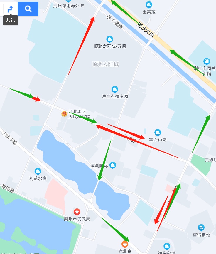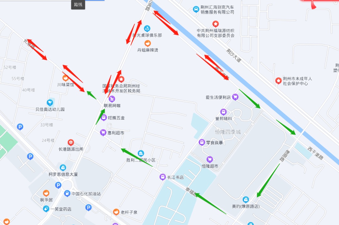 修路期間行駛路線:長港路-紅門路-荊沙大道(吾悅廣場)-江漢北路