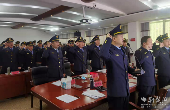 麻城市生態(tài)環(huán)境保護綜合執(zhí)法大隊現(xiàn)場宣誓 通訊員供圖