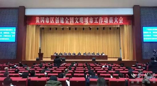 黃岡市區(qū)創(chuàng)建全國文明城市工作動(dòng)員大會(huì)現(xiàn)場(chǎng)。通訊員 供圖