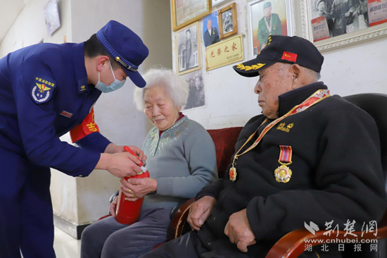 荊楚網(wǎng)(湖北日?qǐng)?bào)網(wǎng))訊(通訊員紀(jì)曉婷)3月5日是第59個(gè)“學(xué)習(xí)雷鋒日”,為進(jìn)一步弘揚(yáng)“奉獻(xiàn)、友愛、互助、進(jìn)步”的志愿服務(wù)精神,日前,黃石市消防救援支隊(duì)大冶大隊(duì)走進(jìn)朝陽(yáng)社區(qū)94歲參戰(zhàn)老兵家中,用實(shí)際行動(dòng)向老前輩致以誠(chéng)摯的問(wèn)候和敬意。