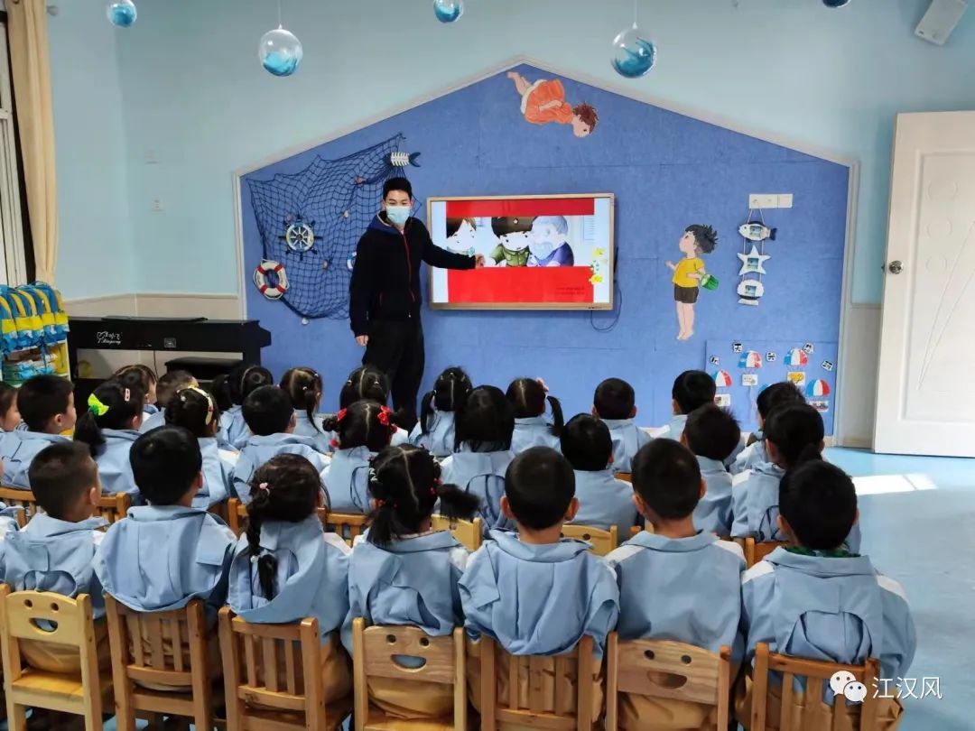 荊州廣播電視臺主播鄧成明也作為志愿者,來到文湖幼兒園的小朋友身邊,給孩子們講“雷鋒的故事”。