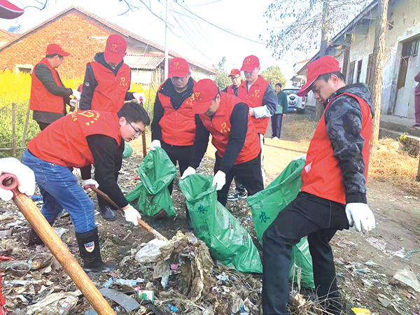 3月4日,在沙洋縣后港鎮(zhèn)港口村6組長湖沿岸,一群身著統(tǒng)一服裝、手拿鐵鍬和蛇皮袋的志愿者正在對沿湖的固體垃圾進行集中清理。