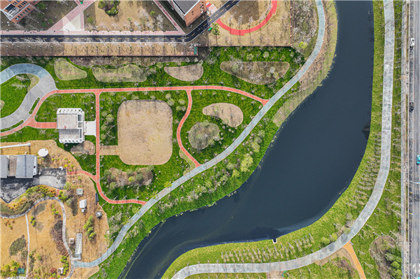 陽春三月,草長鶯飛。3月7日,無人機(jī)從空中俯瞰沙北新區(qū)水系工程二區(qū)景觀,蜿蜒的水系好似一條碧綠色絲帶環(huán)繞沙北新區(qū),大片綠色草坪生機(jī)勃勃,令景觀帶春意盎然,風(fēng)景美不勝收。