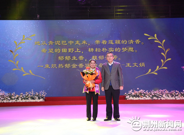 圖為:市委書記吳錦為“楚楚動人?最美巾幗奮斗者”王琥青送上祝福