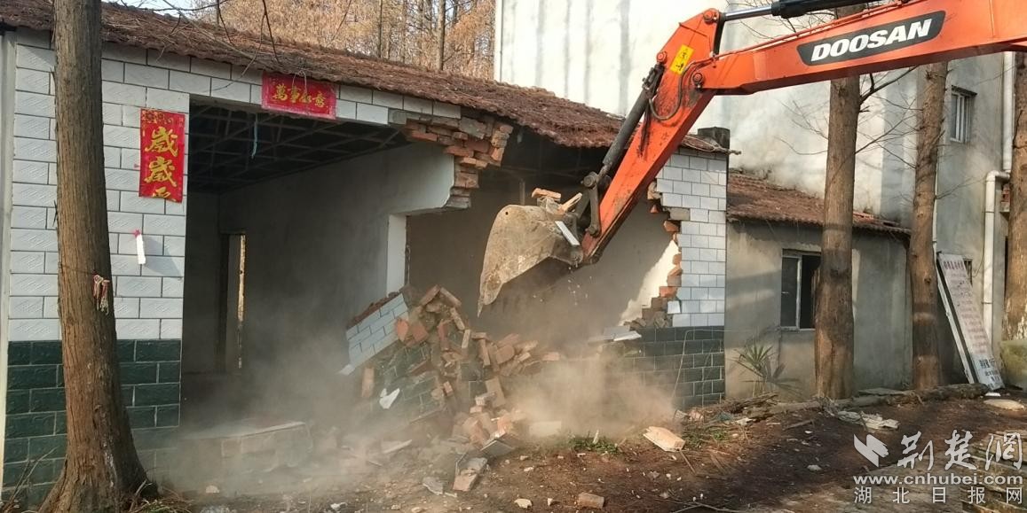 朱湖辦事處項目建設(shè)區(qū)正在進行房屋拆除。萬清平 供圖