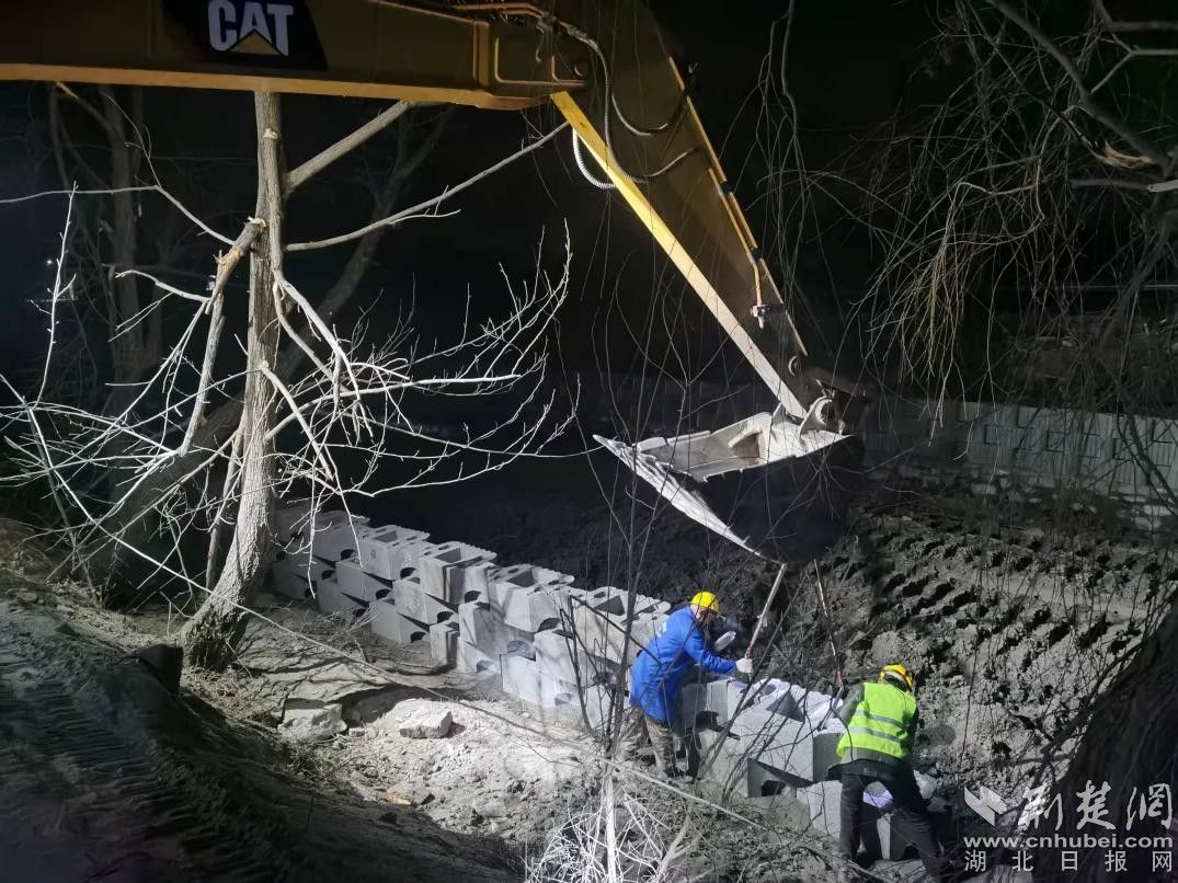 施工人員夜以繼日搶修生態(tài)駁岸。萬清平 供圖