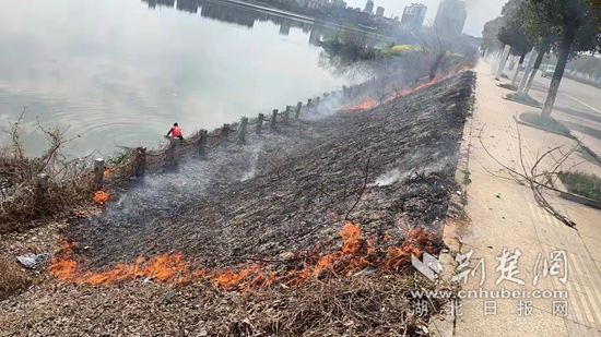 荊楚網(wǎng)(湖北日?qǐng)?bào)網(wǎng))訊(通訊員 嚴(yán)麗 柯學(xué))3月12日下午,陽(yáng)新縣城區(qū)園博園社區(qū)黨總支部副書記陳海林和兩名同事,像往常一樣穿上志愿服務(wù)者的“紅馬甲”在轄區(qū)內(nèi)巡邏,路過蓮花湖一橋時(shí),突然發(fā)現(xiàn)湖堤方向冒著濃煙。