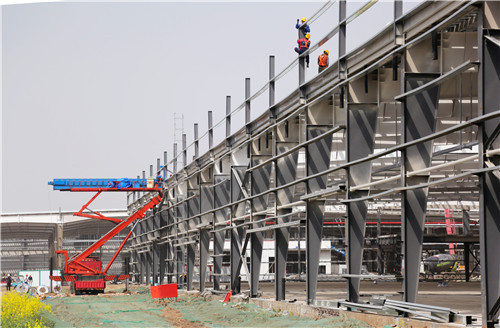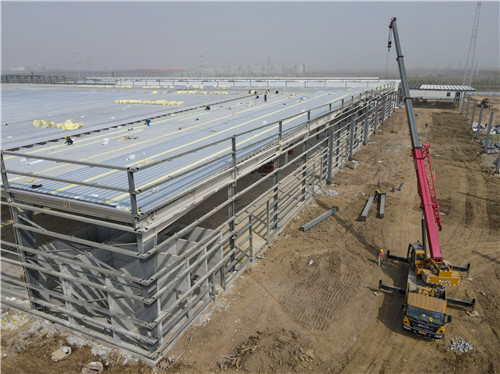 據(jù)了解,目前,該產(chǎn)業(yè)園的土建工程已基本結(jié)束。施工單位抓住晴好天氣搶工期,對(duì)主體鋼結(jié)構(gòu)的屋頂、墻面加緊安裝及內(nèi)外裝修裝飾。