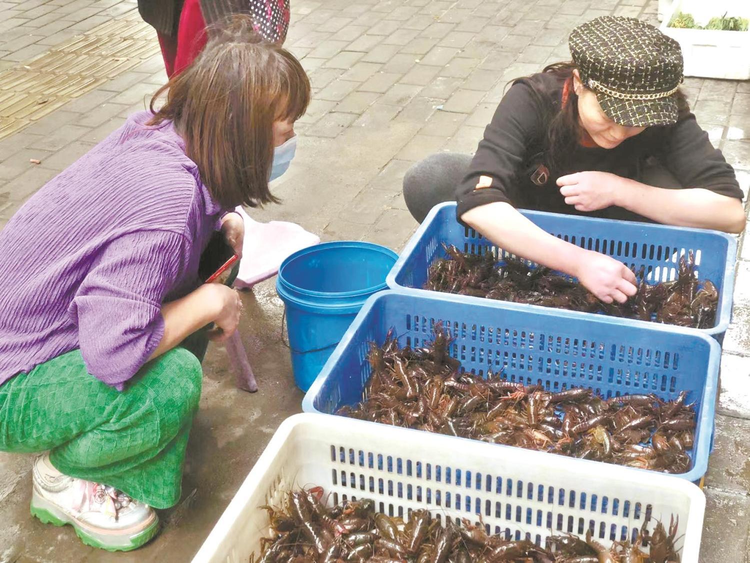 武漢市民在生鮮市場(chǎng)挑選小龍蝦