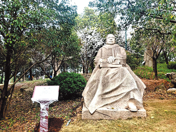 曹禺雕像及新標(biāo)識牌。荊門晚報通訊員 劉草 攝