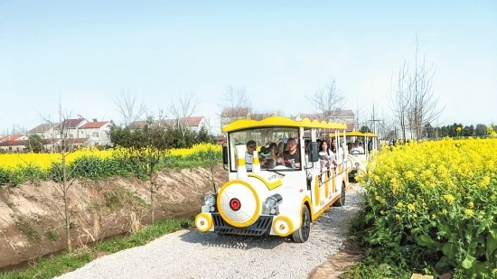 近日,一列觀光小火車穿行在馬家寨鄉(xiāng)萬場村,載著游客暢游油菜花海,與大自然親密接觸,為即將召開的“全國油菜專家大會(觀摩現(xiàn)場)暨千里江陵油菜花賦+全域旅游”活動渲染氛圍。(吳桐攝)