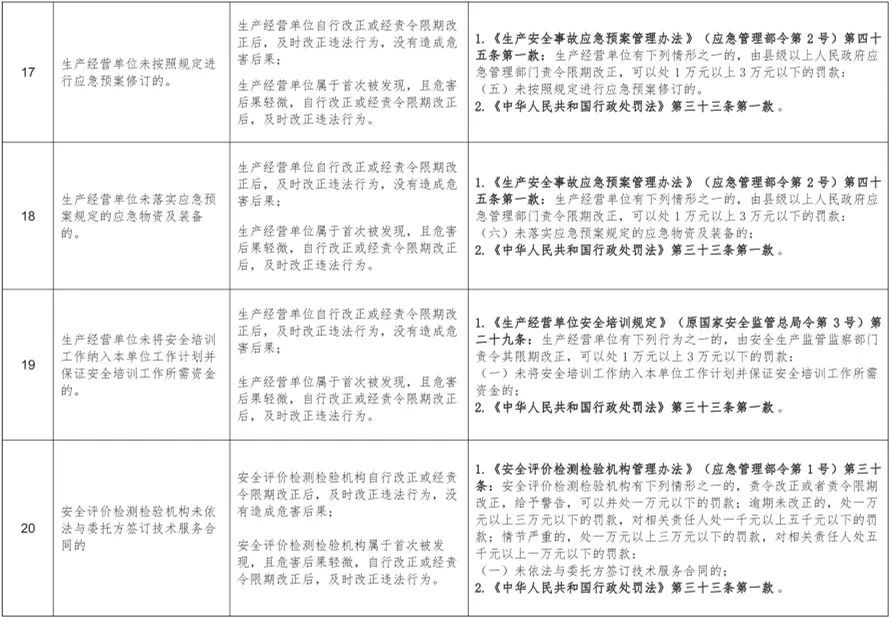 《清單》實施后,對于這種違法行為首次發(fā)現(xiàn)且危害后果輕微的,及時改正后,應急管理部門將對企業(yè)免于行政處罰。