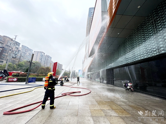 消防救援人員首先利用移動(dòng)搖擺炮對外部火勢進(jìn)行控制,后出動(dòng)水槍對明火進(jìn)行壓制。與此同時(shí),指揮員安排一組人員進(jìn)入建筑內(nèi)部疏散救援受傷人員。數(shù)十分鐘后,火情得到有效控制,商場內(nèi)員工、顧客全部疏散到安全區(qū)域,演習(xí)結(jié)束。