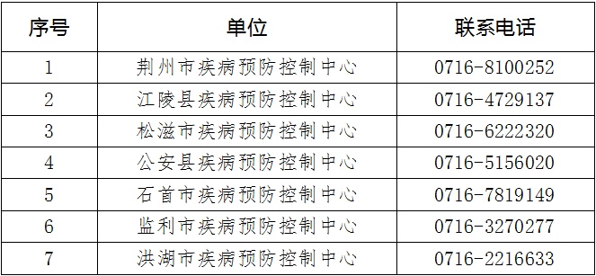 附:荊州市各疾控中心咨詢熱線