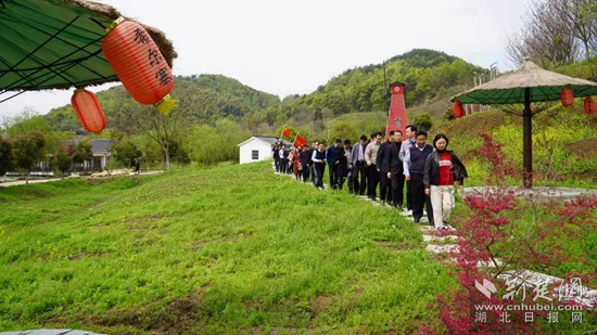 在希爾寨生態(tài)農(nóng)莊,大家饒有興致地觀看了獨(dú)具匠心的“同心林·石榴園”,正逢春天,草木蔓發(fā),生機(jī)盎然,此時(shí)的希爾寨生態(tài)農(nóng)莊儼然成為一片花的海洋,櫻花、桃花、紫荊花、海棠花、玉蘭花爭(zhēng)奇斗艷,競(jìng)相開(kāi)放,更有戀橋的別致、涵山堂的典雅、桃花島的悠然、九間堂的飄逸……自然景觀和人文景觀有機(jī)地融合在一起,別有一番韻味。人群中,頓時(shí)傳來(lái)了一句響亮的口號(hào):花團(tuán)錦簇希爾寨、同心同行向未來(lái)!
