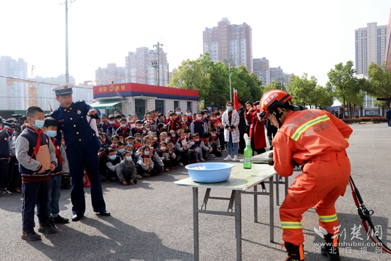 荊楚網(wǎng)(湖北日?qǐng)?bào)網(wǎng))訊(通訊員寧?kù)o)3月28日是第27個(gè)“全國(guó)中小學(xué)生安全教育日”。當(dāng)天,黃石開(kāi)發(fā)區(qū)·鐵山區(qū)四棵小學(xué)百余名學(xué)生在老師的帶領(lǐng)下,走進(jìn)“紅門(mén)”與消防員進(jìn)行了零距離接觸,度過(guò)了一個(gè)與眾不同的安全教育日。