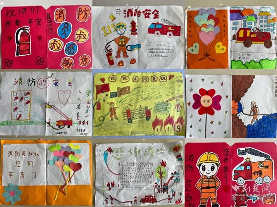 參觀結(jié)束后,可愛(ài)的孩子們?yōu)橄绬T帶來(lái)了精心準(zhǔn)備的手寫(xiě)賀卡、繪畫(huà)作品等特殊禮物,消防員叔叔們瞬間都被暖到了,整個(gè)營(yíng)區(qū)沉浸在一片歡快的氛圍中。