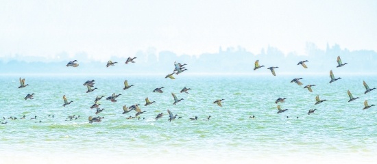 春日里的長(zhǎng)湖,如無(wú)暇美玉。湖面碧波萬(wàn)頃,水鳥(niǎo)愜意翱翔,一幅渚清沙白生態(tài)畫(huà)卷鋪開(kāi)。