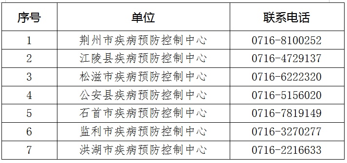 附:荊州市各疾控中心咨詢熱線