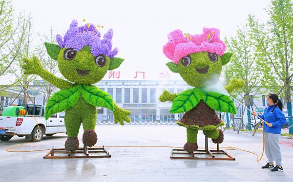 昨日,東寶區(qū)市政園林工作人員對火車站門前的園博會吉祥物荊荊、薇薇進(jìn)行養(yǎng)護(hù)。為營造濃厚園博會氛圍,他們制作了8組吉祥物,擺放在火車站、文化宮等地。去年6月,園博會吉祥物發(fā)布,創(chuàng)意原型為荊門市花紫薇花。荊荊頭頂紫薇花,紫色代表夢幻與高雅,身著藍(lán)衣,寓意碧水藍(lán)天的良好生態(tài),衣上水紋代表漳河之水;薇薇的頭發(fā)是赤薇花,紅色體現(xiàn)熱情與喜悅,紅色裙子寓意對高品質(zhì)生活的憧憬,衣上水紋則代表漢江之水。兩個娃娃身上還采用了欒樹葉、花和紫薇葉等元素,多樣植物代表了良好生態(tài)。(記者 朱俊波 通訊員 鄭勇 攝)