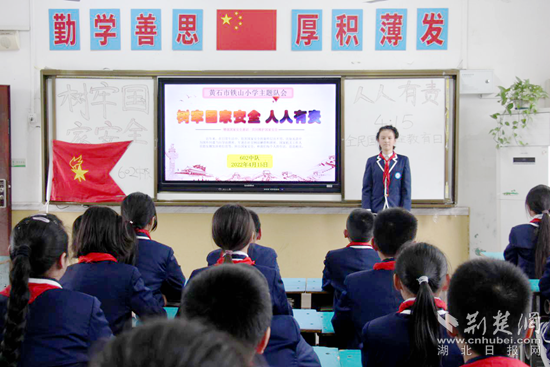 在此背景下,黃石開發(fā)區(qū)·鐵山區(qū)各中小學開展了“全民國家安全教育日”宣傳系列活動。學校通過LED顯示屏和班級牌播放國家安全標語、主題海報,紅領巾廣播站宣傳國家安全教育知識,召開形式多樣的安全教育主題班會、制作手抄報等一系列內容豐富、形式多樣的活動。